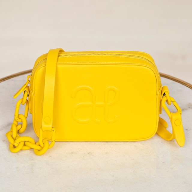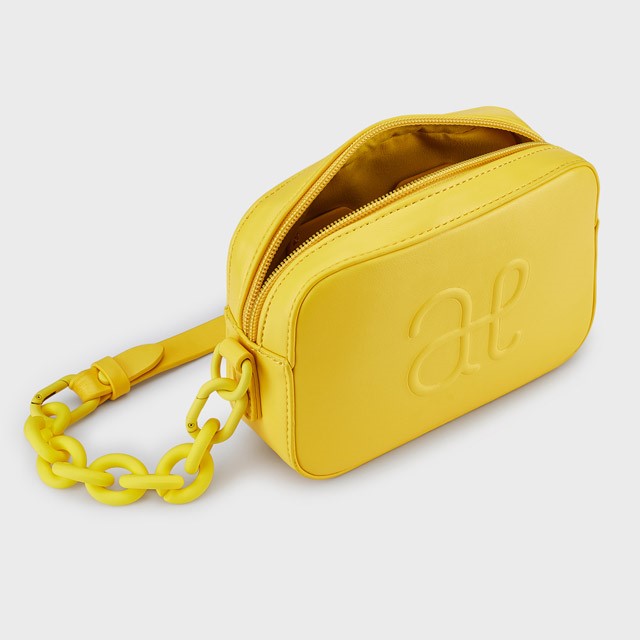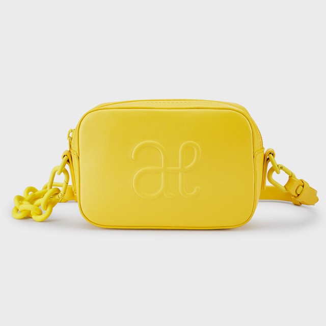 Štýlová dievčenská kabelka s 3D logom v žiarivej žltej