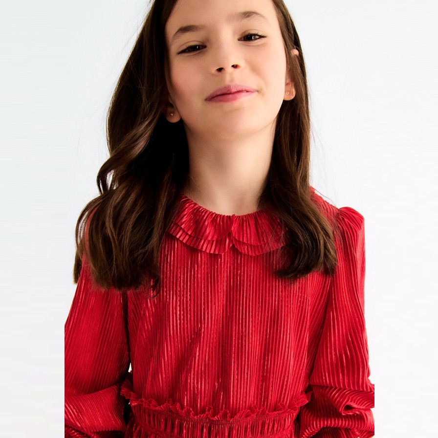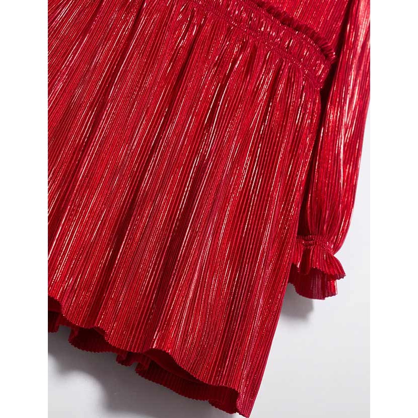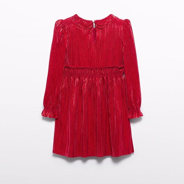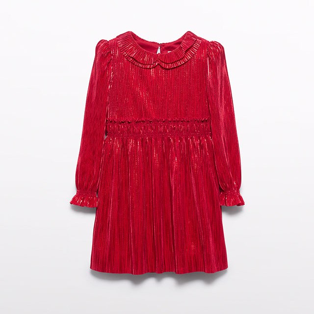 Nádherné plisové šaty v červenej farbe, vhodné na vianočné sviatky.
