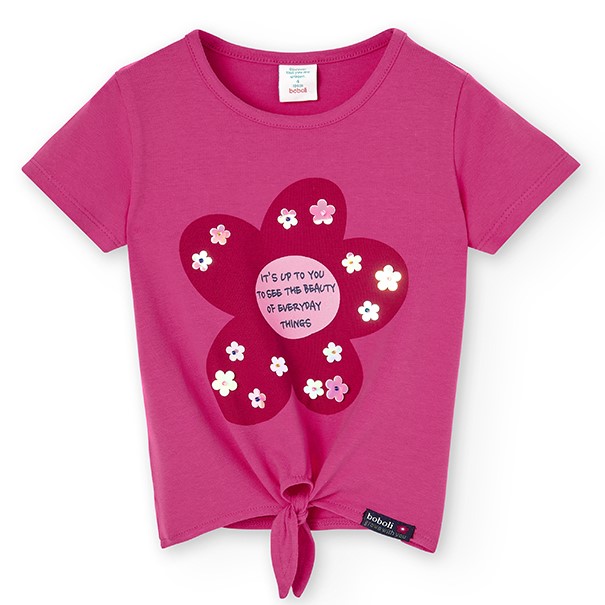 Dievčenské tričko v krásnej tmavoružovej farbe s viazaním na uzol