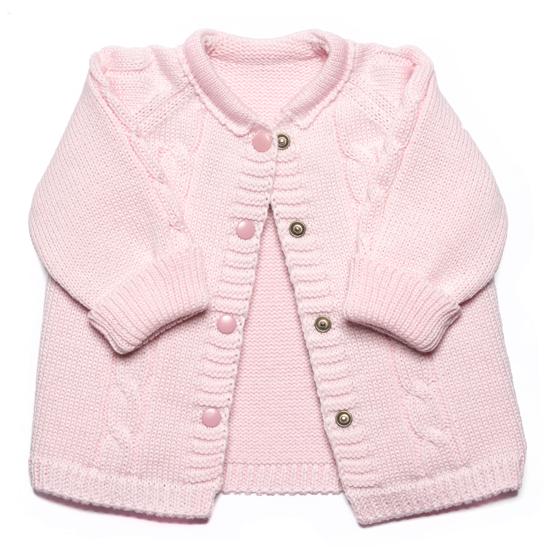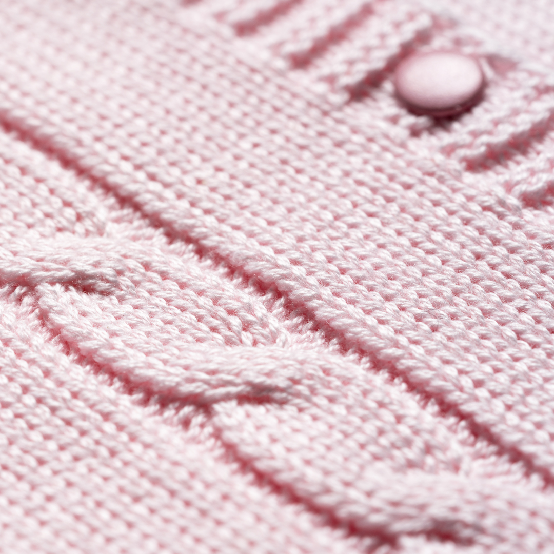 Kojenecký pletený svetrík jemnej ružovej farby Produkt disponuje kvalifikáciou OEKO-TEX®100
