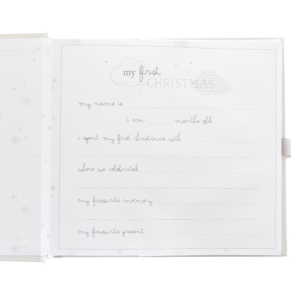 • S rozkošným dizajnom sloníka Dumbo a krásnym zapínaním na stuhu je ideálnym miestom na uloženie špeciálnych slávnostných spomienok. Obsahuje tiež kompletnú prvú stránku s nadpisom „My first Christmas“.