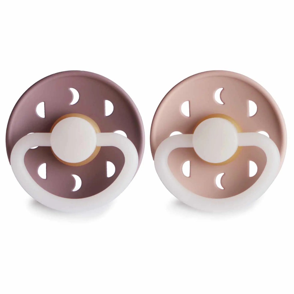 Dvojbalenie kaučukových cumlíkov vhodných pre deti, svietiacich v tme, so vzorom mesiacov. veľkosť 1: veľkosť: 27 mm / odporúčaný vek: 0-6 mesiacov veľkosť 2: veľkosť: 30 mm / odporúčaný vek: 6 – 18 mesiacov