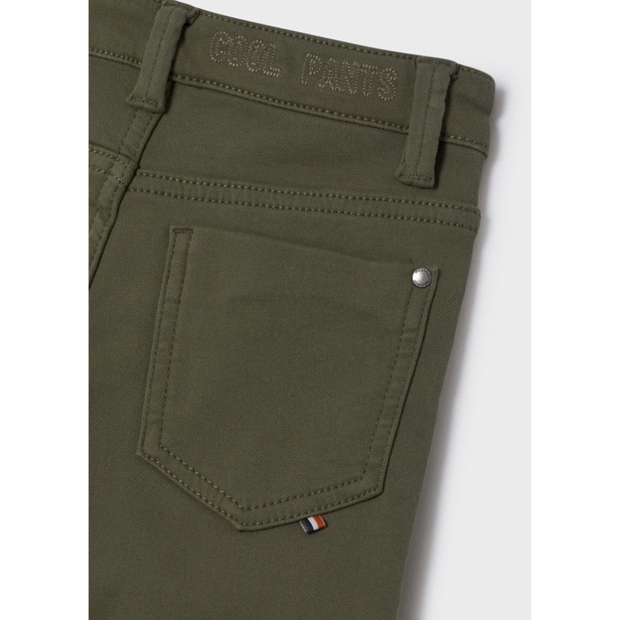 Mäkké chlapčenské nohavice slim fit v tmavozelenej farbe