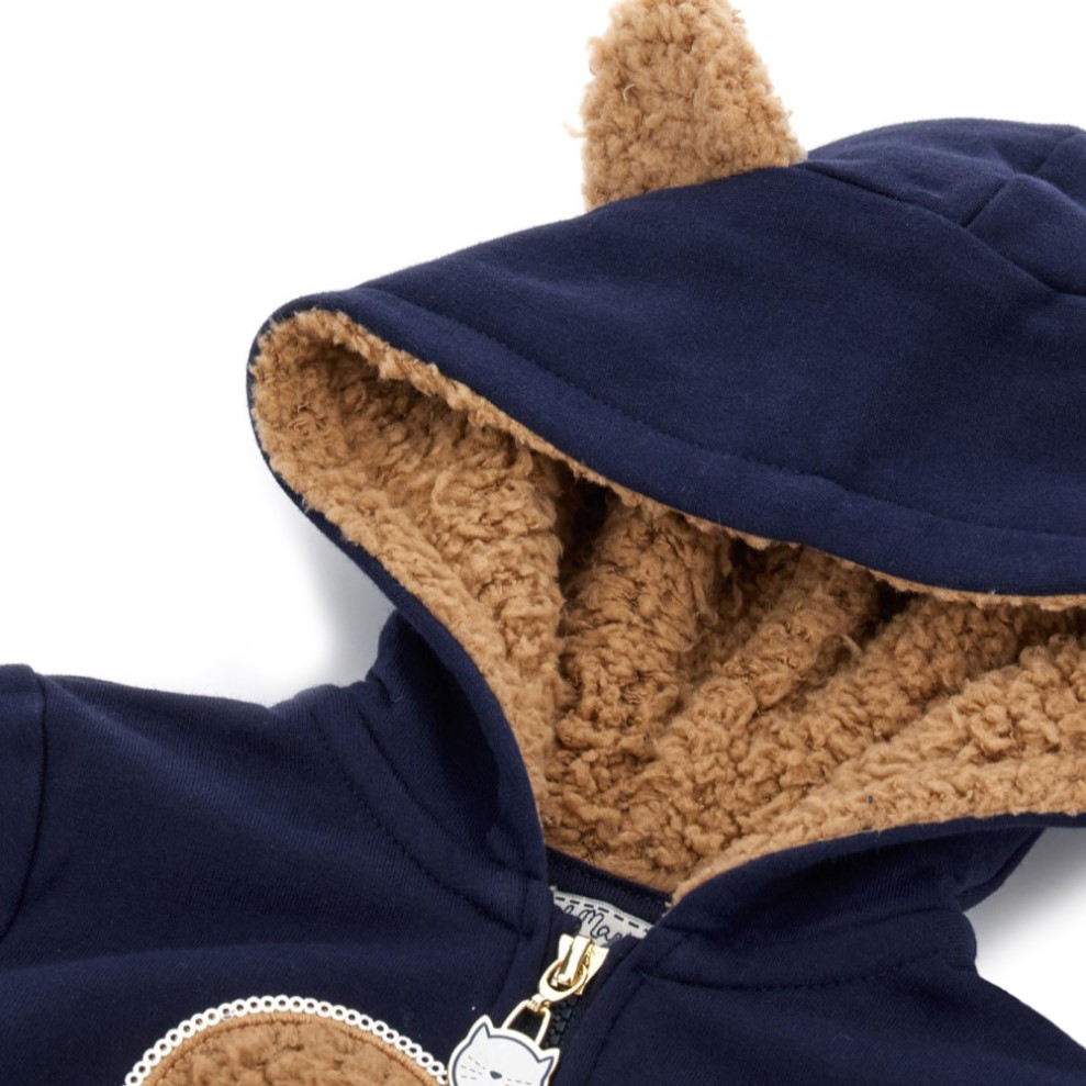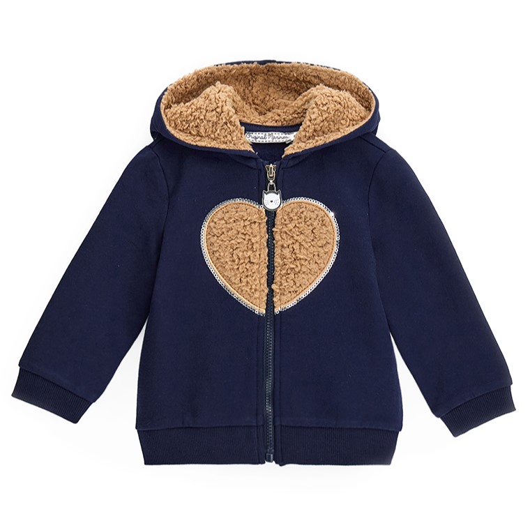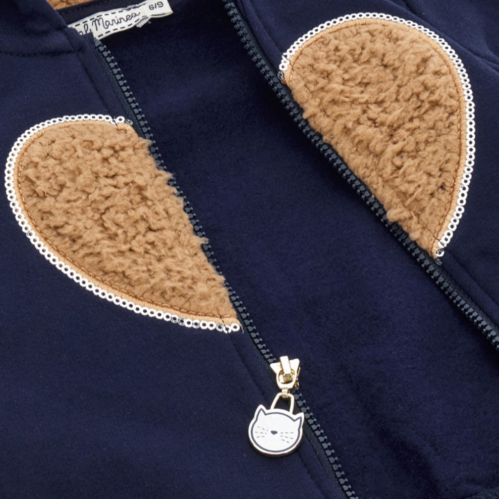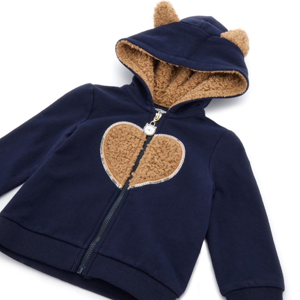 Dievčenská mikina so srdiečkom doplnená kožušinovou kapucňou s roztomilými uškami