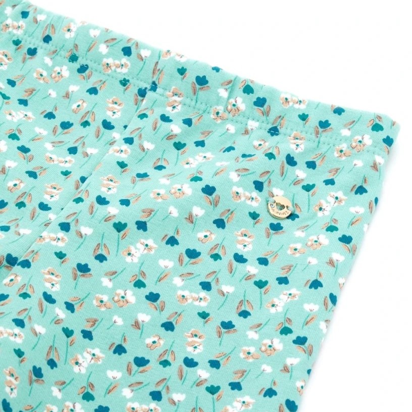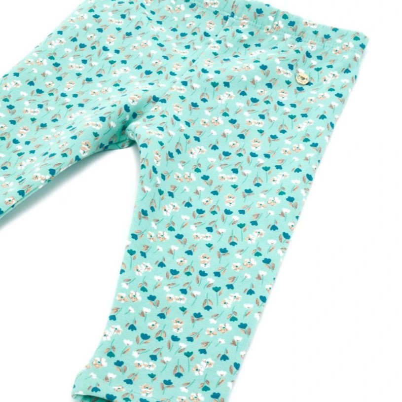 Dievčenské zateplené legíny s jemnými kvietkami v odtieni tyrkysovej