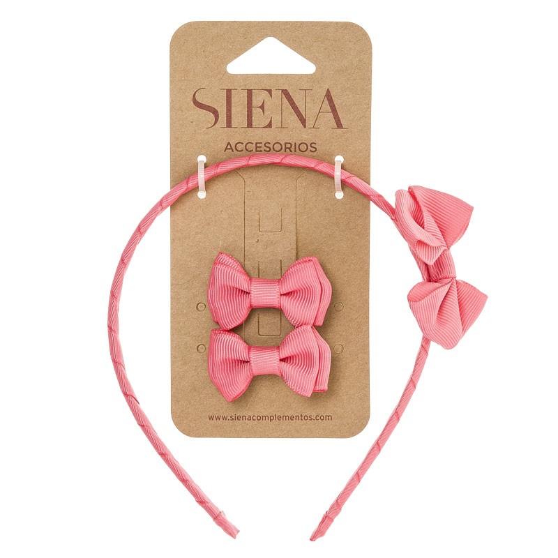 Dievčenský elegantný 3 Set do vlasov zložený z čelenky s mašľou a dvomi sponkami s mašličkami v odtieni koralovej