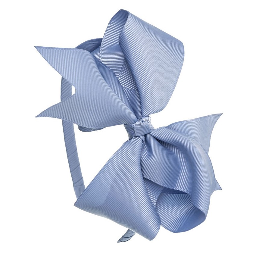 Dievčenská elegantná čelenka s veľkou mašľou v odtieni french blue